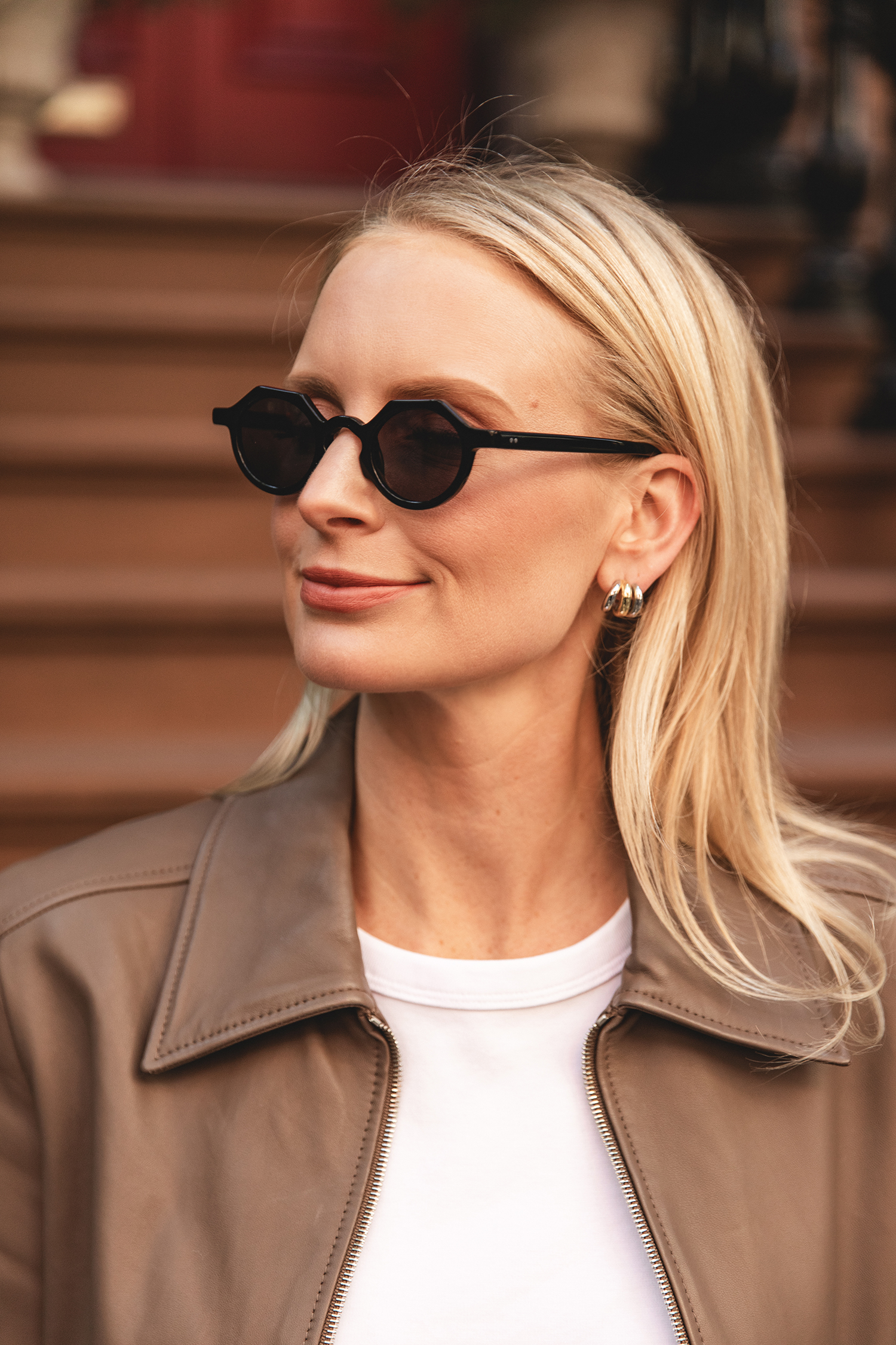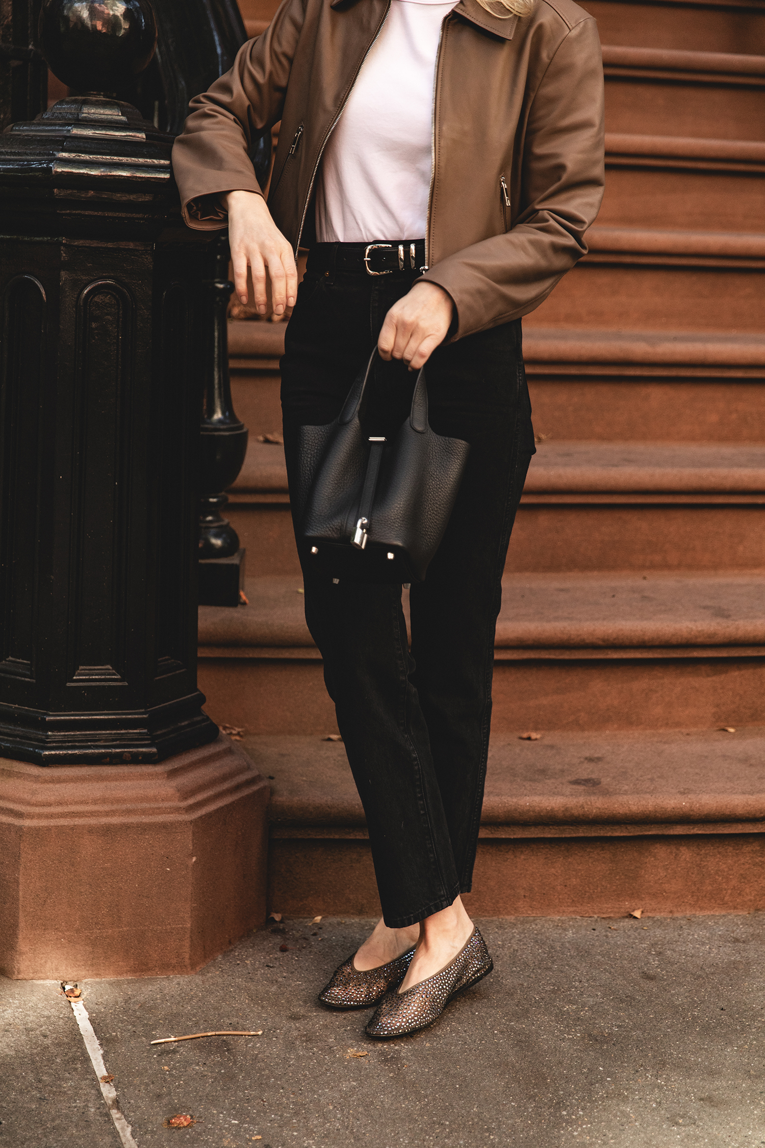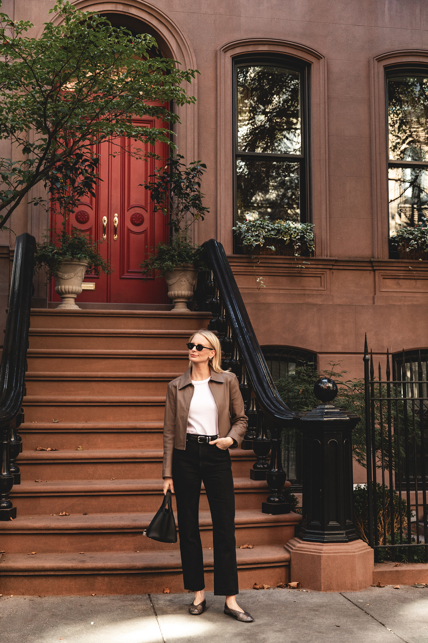 With grey being a trending color for the fall season, when I spotted this leather jacket during the Nordstrom Anniversary Sale in July I knew I had to have it. It’s definitely been my favorite #NSALE purchase this year, as I’ve already worn it SO much! The cut is more modern and streamlined than my other leather jackets, and the silver hardware makes it look even more sleek. You can’t see it in these photos, but be sure to peep the back for my favorite detail – the folded tailoring makes for an even more flattering look from the front and the back. Separately, I ordered these flats back in July as well, but while I was in Austin. I wasn’t even thinking about this jacket when I bought them and got them in the mail… but when I arrived back in New York last month I was surprised and delighted to find they are a perfect match! I wore this exact look in Sag Harbor, and then again in the city when my mom was here last weekend – see it here for a more accurate look at the colors.