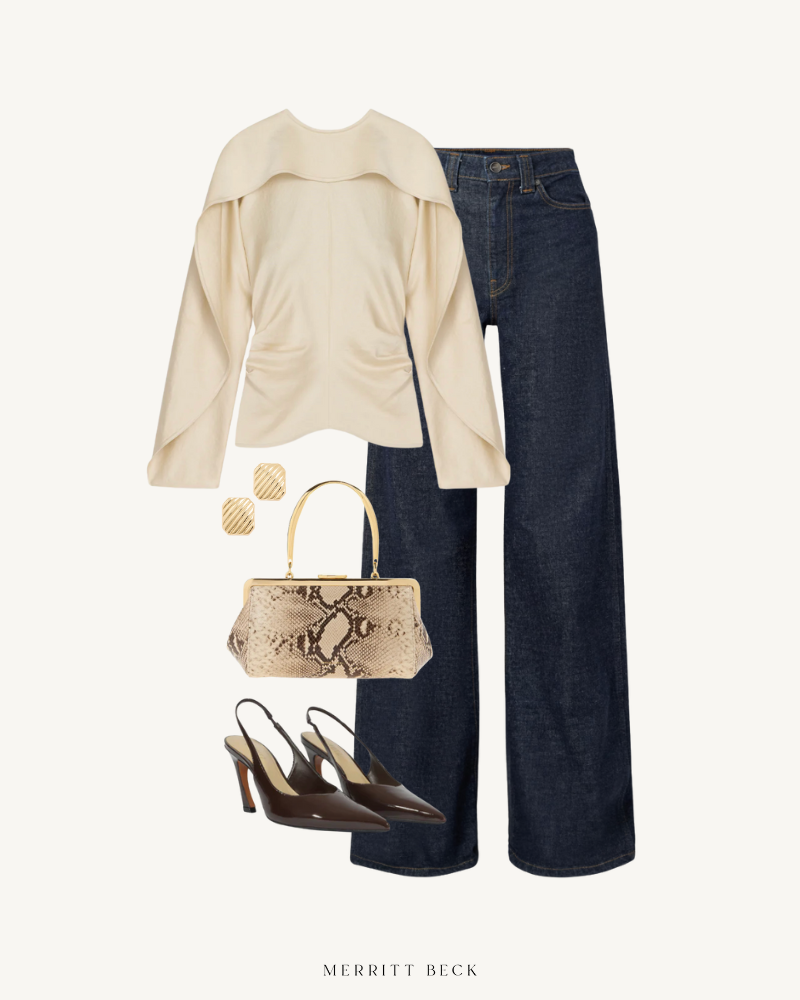 BLOUSE // JEANS // HANDBAG // SLINGBACKS // EARRINGS
