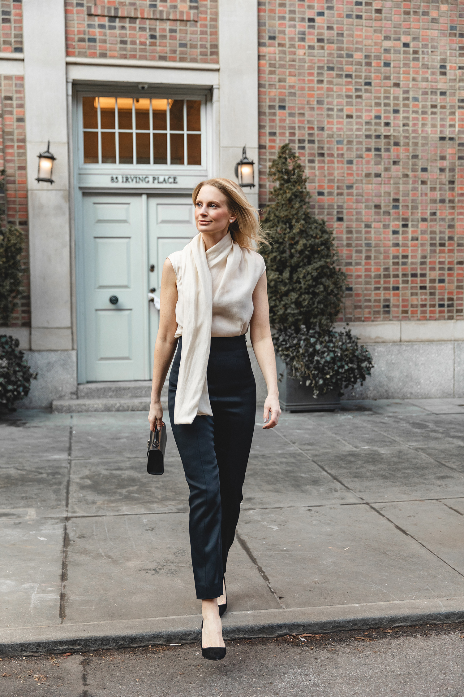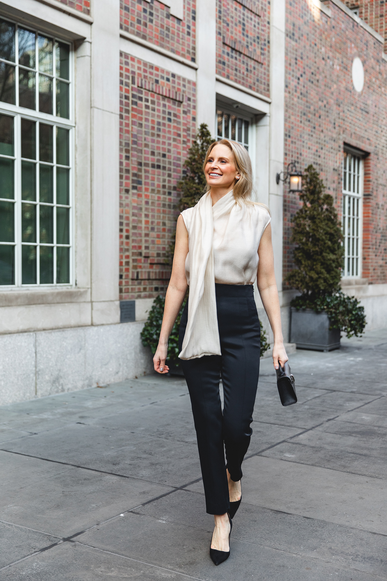 Keeping the color palette streamlined is the simplest way to achieve an effortlessly chic look. While I’d certainly never discourage wearing color, having a collection of high-quality basics will only serve you when you’re getting dressed each day. And who says these basics have to be boring? As long as the color palette is neutral, you can opt for statement styles that are easy to mix and match with other items in your wardrobe. Let’s use this blouse as an example – it’s a piece you can style with denim for a more casual dinner, with a skirt for the office, or with satin pants for a cocktail party! Because of their versatility, neutrals are often more easy to style and you’ll get more bang for your buck over time.